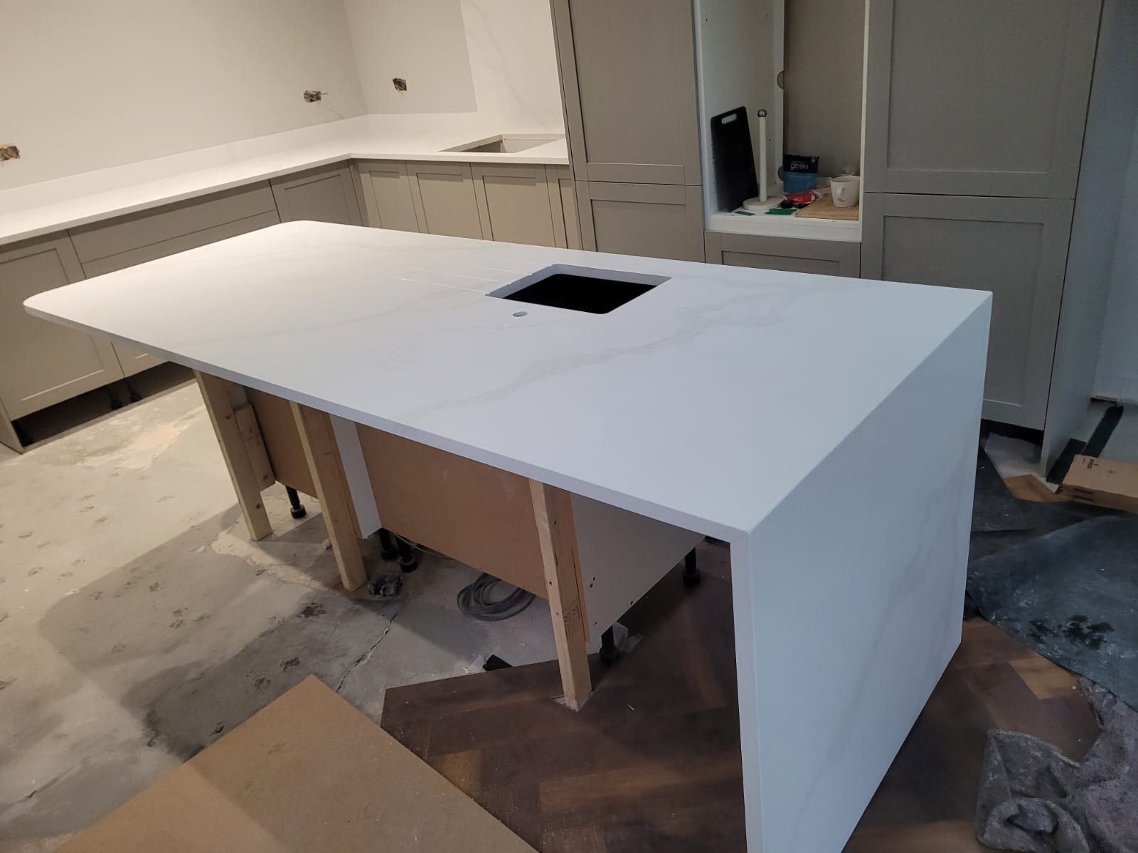 PD Granite templated and installed every element with precision. The island was carefully positioned as the focal point of the kitchen, while the backsplash and upstands were fitted seamlessly to protect the walls and enhance the overall look. Clean joins, polished edges and careful alignment of the veining ensured a flawless final result.