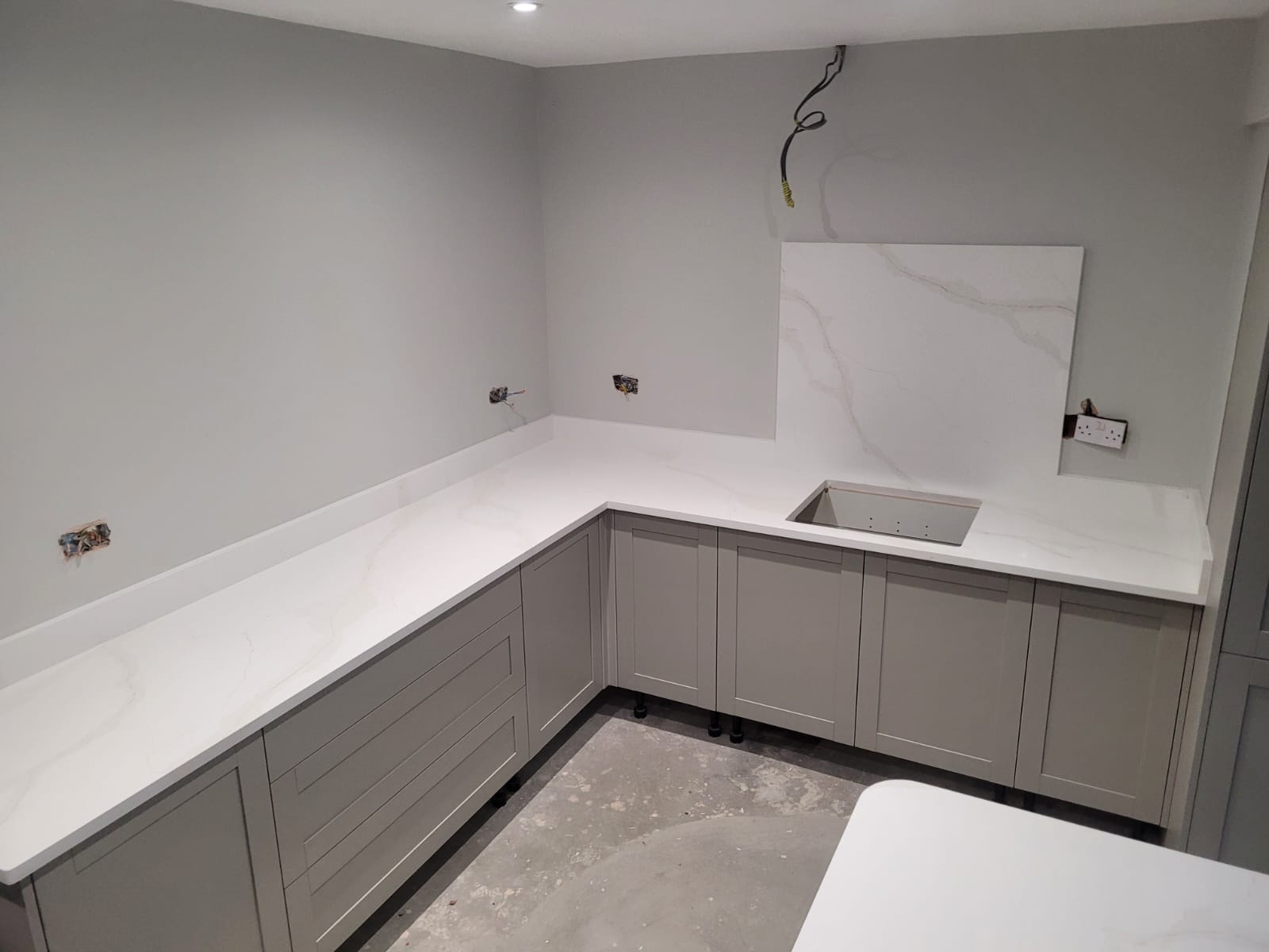 Calacatta Oro Quartz is recognised for its crisp white background and elegant gold and grey veining, inspired by classic Italian marble. In this Arksey kitchen, the stone added a sense of luxury and brightness, while the 30mm thickness gave the worktops and island a solid, high-end presence. The consistent use of the same quartz across the island, end piece and wall areas tied the whole design together beautifully.